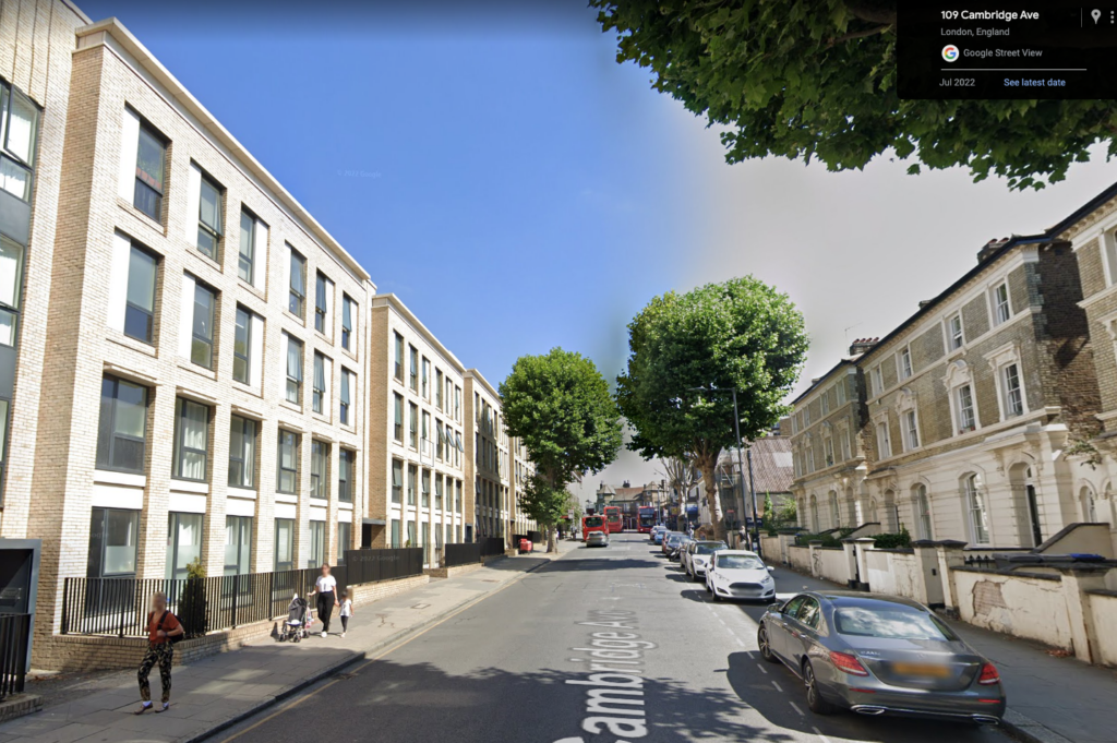 Estates can increase enormously in density: in Tower Hamlets, affordable housing provider One Housing is redeveloping 24 homes into 202, of which 50 percent will be rented at below-market rates. All 24 existing households will get new, higher-quality homes, and 84 percent of residents approved the proposals with 100 percent turnout. In Lambeth, 135 homes are being redeveloped by Riverside Group into 441 larger and higher-quality homes, of which almost half are submarket. This was approved by existing residents at 67 percent with an 87 percent turnout. The development comes with not only new homes, but new amenities like a gym, a community center, cycle parking spaces, and a new communal outdoor space.