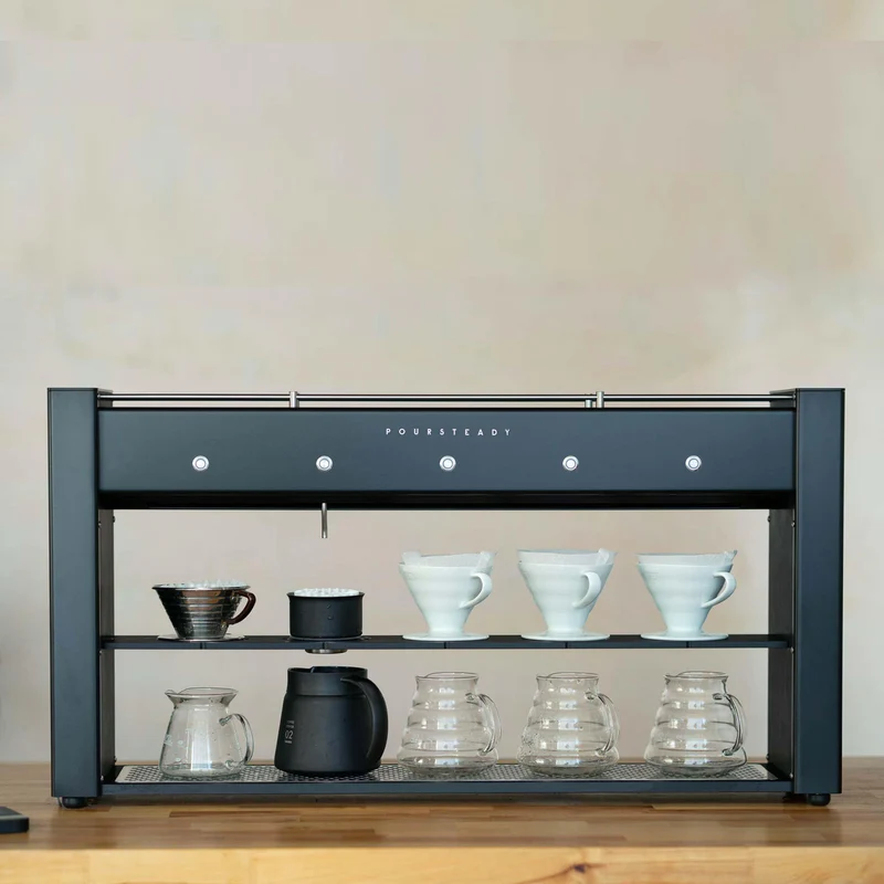 The Poursteady misses some of the benefits of coffee-brewing machines – better thermal control and the efficiencies of brewing several quarts of coffee at once, for example – but customers get to watch a version of the pour-over ritual they love.