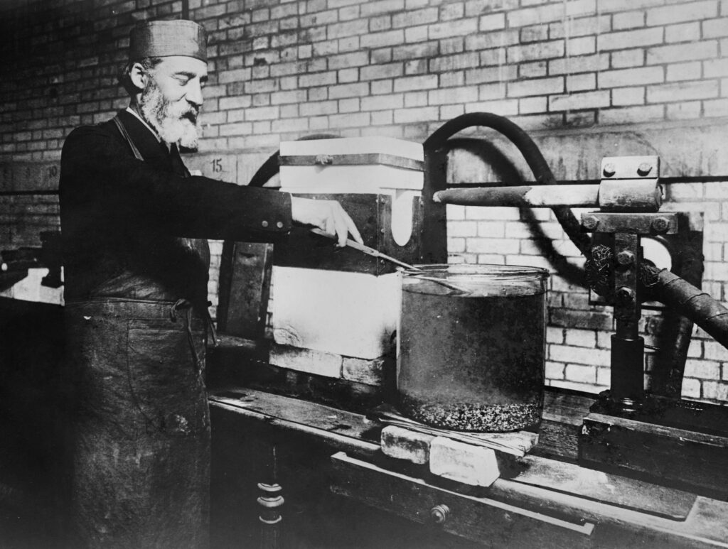 Moissan would go to his death in 1907 believing that he had synthesized diamonds. Other chemists, including Henry Louis Le Chatelier, were skeptical and his experiments did not replicate. The German chemist Otto Ruff and the English engineer Sir Charles Parsons separately believed that they had reproduced his results, only to repudiate their findings after more careful examination. Moissan’s widow would later tell Parsons that she believed one of Moissan’s assistants had introduced natural diamond fragments into the experiments ‘in order to please the old man’. Nonetheless, despite his failure, Henri Moissan was correct to believe that diamonds could be synthesized under a combination of high pressure and high temperature, catalyzed by a metal solvent.