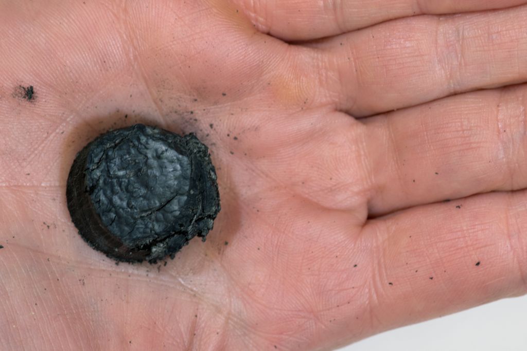 Against one wall are powders, liquids, and other samples in glass jars – a ‘sweet shop’ of materials – as well as many four-centimeter cubes designed to be handled and compared. (The library owns about 200 such cubes and rotates what’s on display.) Here, the focus is on materiality, not applications. The opposite wall displays larger samples and finished objects, from an alligator handbag to a golf ball bisected to show its interior. Miodownik encourages me to pick up a large, rippled metal ingot. It proves surprisingly light – magnesium. He holds a sample of so-called transparent concrete up to the light, demonstrating its translucence with his free hand. He points me to a mysterious mass imprinted like folded cloth but too solid to be a textile. It’s rubber from Indonesia, whose processing leaves behind the imprint along with a telltale smoky smell. He opens a drawer to reveal an assortment of sponges. ‘These are delights’, he enthuses. His attitude informs the collection. Miodownik loves materials and believes other people will too. All they need is a chance to play with them.