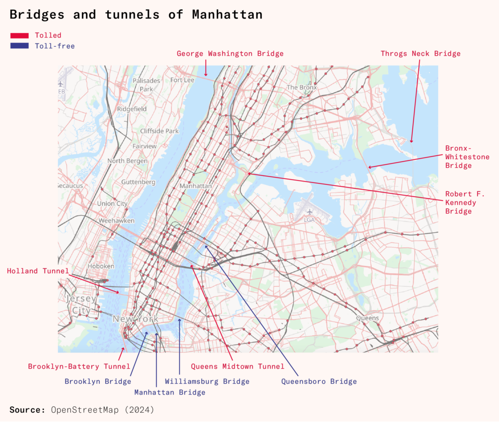 But one group did not see any relief. Drivers from New Jersey and Staten Island already pay high tolls on bridges and tunnels. They would now have to pay the congestion charge on top of existing fees. This triggered intense opposition from those areas, but New Jersey does not get a vote in the New York State legislature, and the support of the mostly Republican representatives of Staten Island – New York City’s least populous borough – was not needed now that larger and left-leaning Democratic majorities could provide the votes.