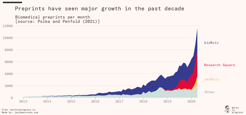 In economics, the circulation of preprints has been normal for decades. In a situation where the average article is published three years after it is submitted to a journal, this is indispensable. But the use of preprints has exploded across many other fields too, and it’s not slowing down.