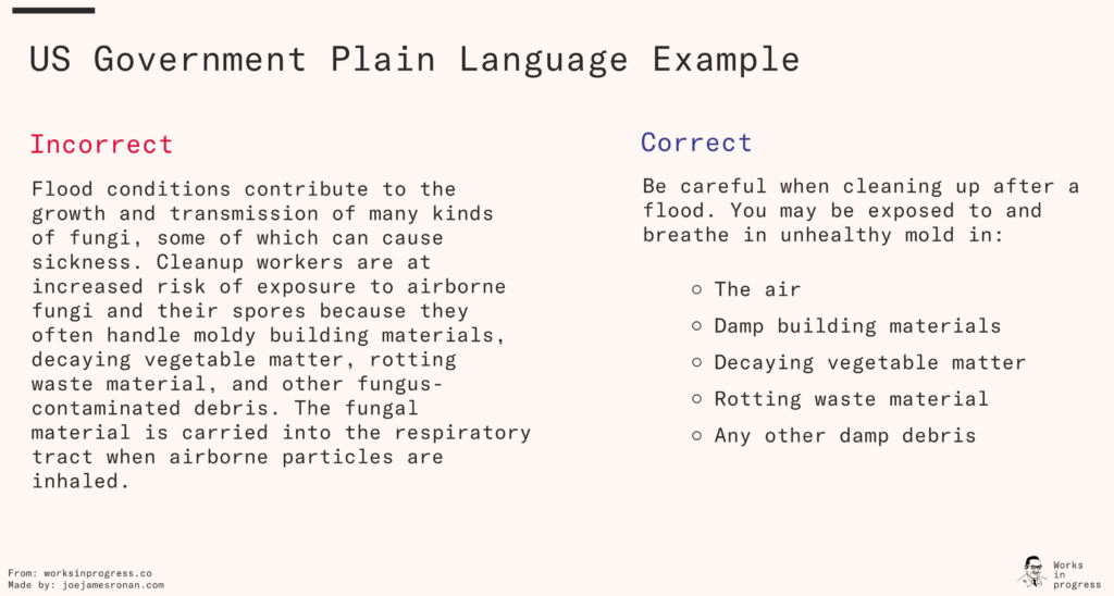 There is no reason that scientific papers couldn’t be written like the ‘after’ version in this example of plain language improvement about flood cleanup.