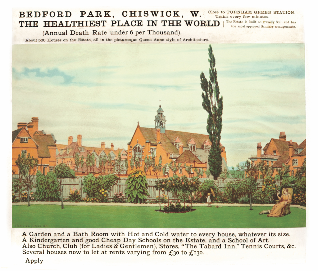 At the upper end of the market, densities quickly fell to levels similar to those of modern affluent suburbs. Many of the elite suburbs of this period are still famous neighborhoods today. American examples include Llewellyn Park in New Jersey, Forest Hills on Long Island, and Riverside outside Chicago. Examples from the British Isles include Rathmines in Dublin, Bedford Park in London, and Edgbaston in Birmingham. Some continental examples are Le Vésinet outside Paris, Pasing in Munich, or Westend in Berlin, named after London’s West End as a marketing gambit. Even small towns often had a tiny ‘villa district’, maybe just a couple of streets, like the Kingsland neighborhood of Shrewsbury. Only in the poorer countries of Mediterranean Europe did planned suburbs fail to catch on.