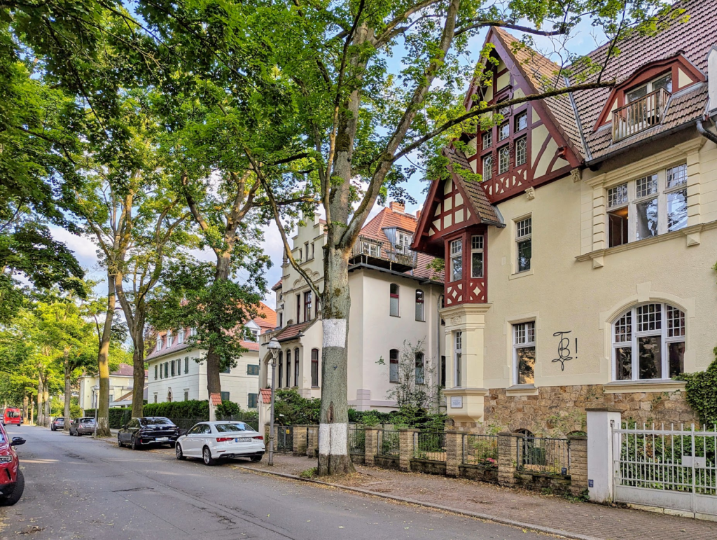 For example, Grunewald’s zoning designation in the first decade of the twentieth century permitted two storeys plus a roof storey and basement, banned everything except detached and semi-detached buildings, and required a four-meter setback from the street – much the same as the covenant quoted above. The zoning code remains similar today, and has successfully preserved Grunewald as Berlin’s premier villa colony.