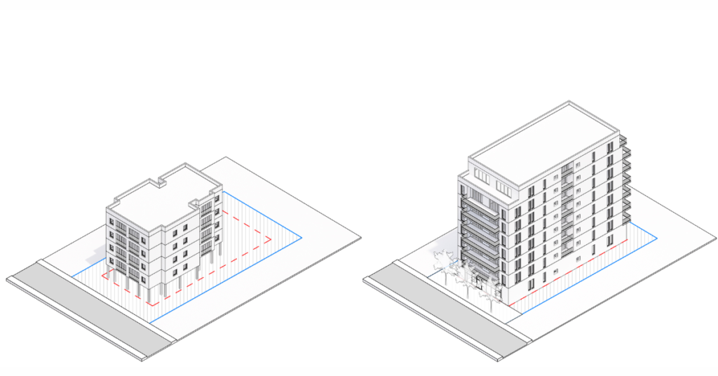 Israel has two programs to increase the density and safety of its housing stock: Pinui Binui (‘evacuate and rebuild’) and TAMA 38. Established in 1999 and 2005, respectively, both programs revolve around bargaining between existing homeowners and developers. TAMA 38 has been especially fruitful, allowing developers to bypass the typical zoning process if a supermajority of property owners accepts the developer’s proposal. Upon approval, the developer obtains the right to replace the old building with a new, larger one; existing residents receive a new home, and the developer profits from the sale of additional units. In Tel Aviv, these two programs are together responsible for over half of new housing.