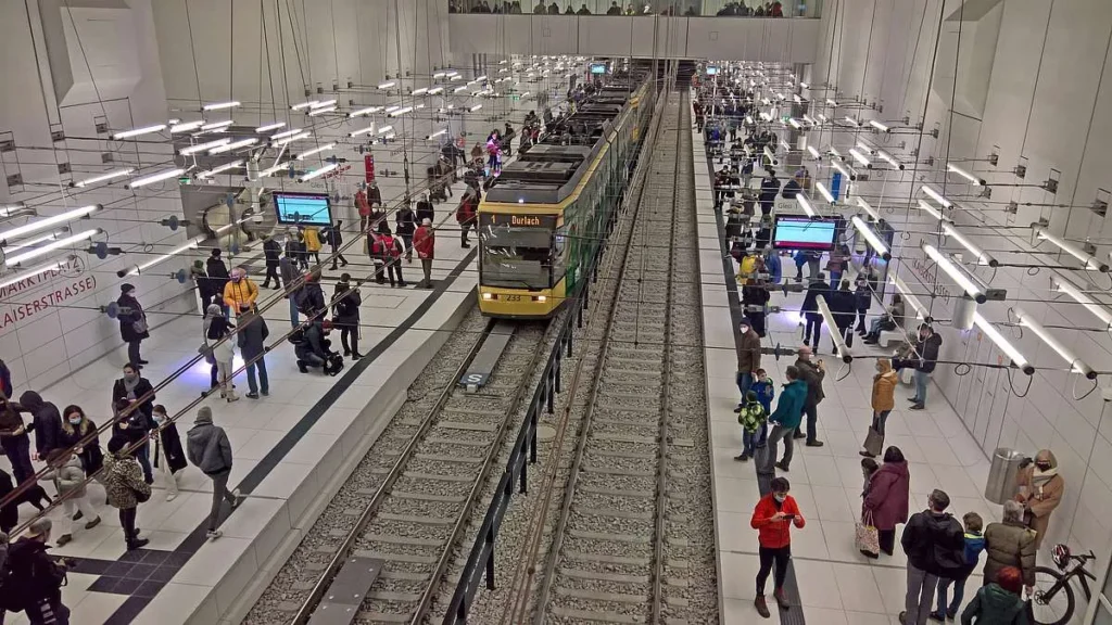 Karlsruhe is a small city of only 300,000 people in southwestern Germany, near the French border. The city’s main station is nearly two kilometers from the city center, following a project in the early twentieth century to build a larger station on a less cramped site. This caused great inconvenience to passengers, who had to change to the city’s tram network in order to get to the old center.