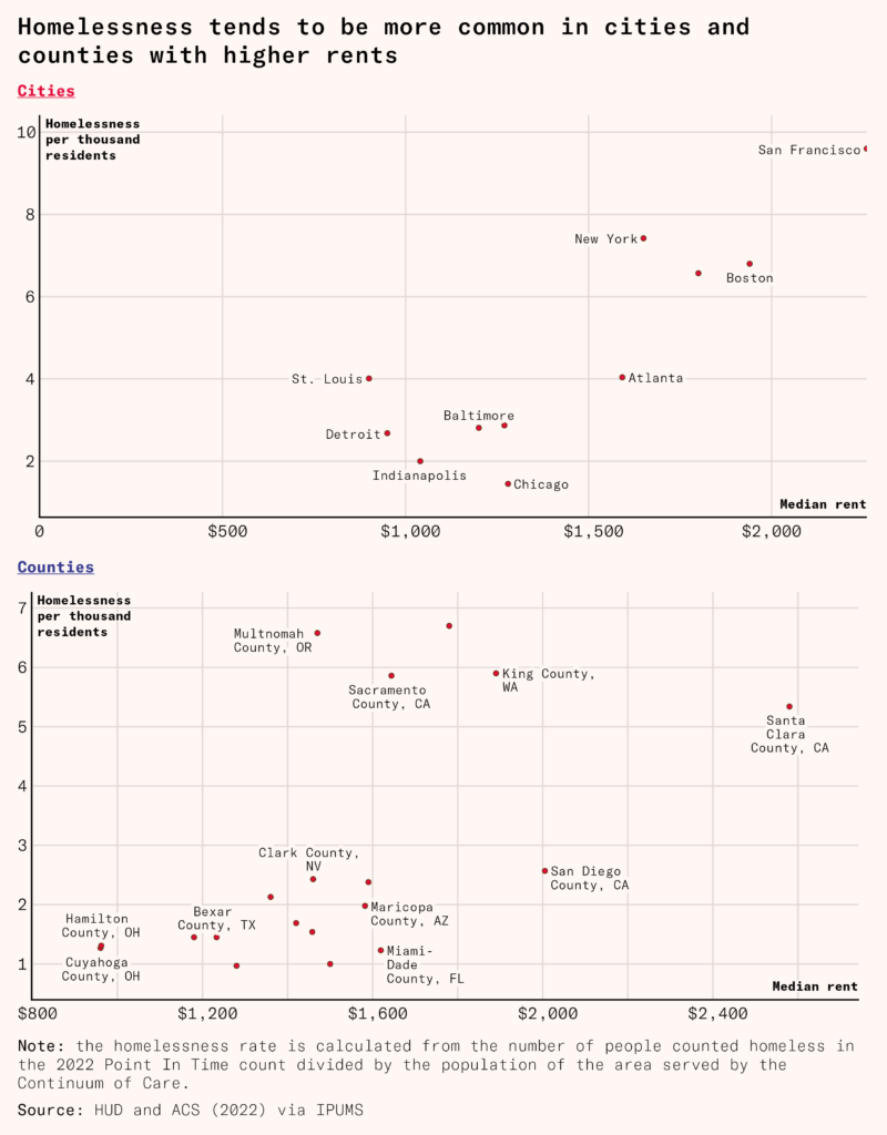 Why do high-cost cities have more homelessness? It’s not just about rents — it’s also about the rooms friends and family can’t afford to share.