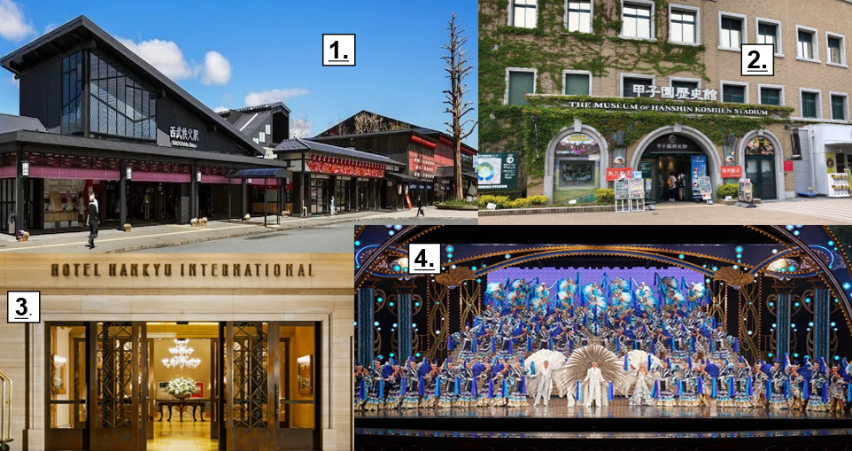 This model was pioneered in the 1950s by what became Hankyu Railways. Hankyu’s network connects central Osaka to its northern suburbs, as well as Kyoto and Kobe. Its innovative founder Kobayashi Ichizo first built suburban housing, then a department store at the terminal station; he then created a hot spring resort, a zoo, and his own distinctive brand of all-women musical theater, the Takarazuka Revue. He also began to run bus services to and from his stations. Other companies emulated Hankyu’s example: Tokyo Disneyland is a collaboration between Disney and the Keisei Railway, while Hanshin in Osaka owns the Hanshin Tigers baseball team.